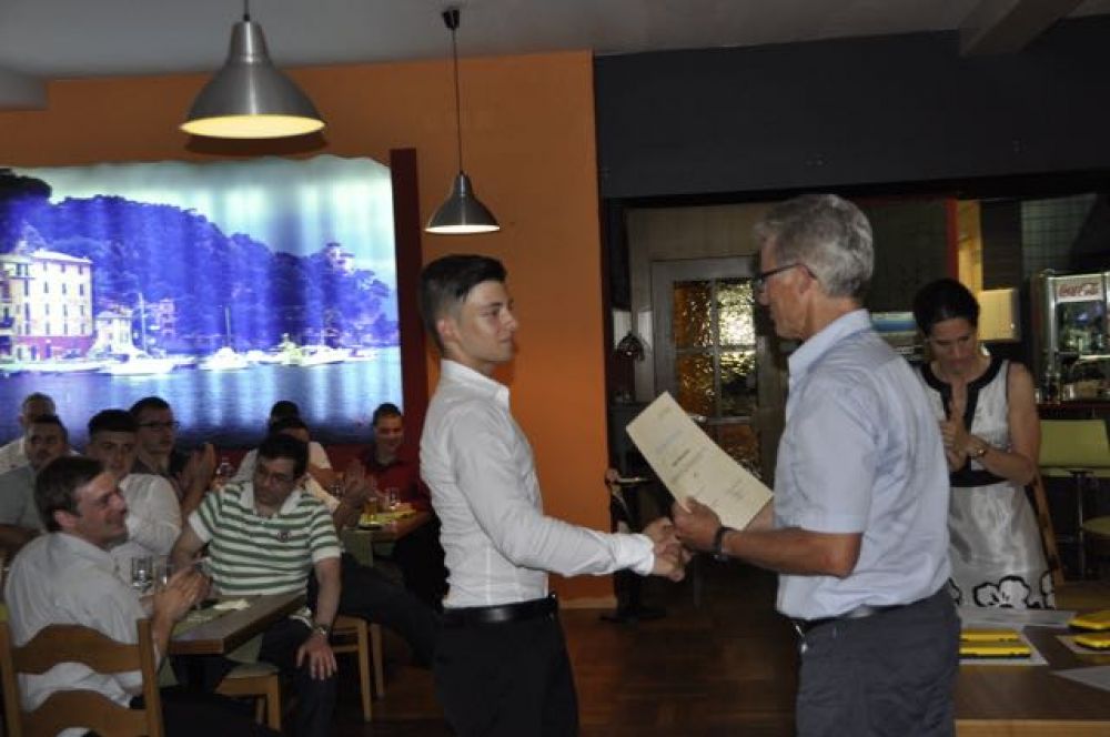 03. Juli 2015Die Lehrabsolventen, Lehrer und Lehrmeister trafen sich am 03. Juli 2015 zur Lehrabschlussfeier im Restaurant Stadtgarten in Wangen an der Aare.